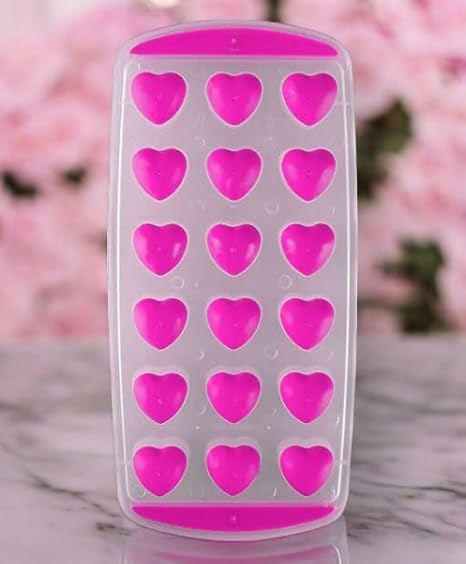 Slikon Tabanlı Kalpli 18 Hazneli Buz Kalıbı (Pembe)