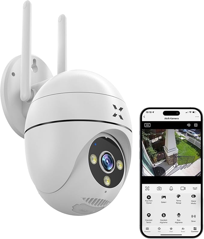 Smart Dış Mekan Wi-Fi Güvenlik Kamerası, 350° Hareket Tespiti/Takibi, FHD Video, IP65 Su Geçirmez, Gece Görüşü, Çift Yönlü Ses, Bulut/Yerel Depolama, Dahili Siren ve Led Aydınlatma X7266