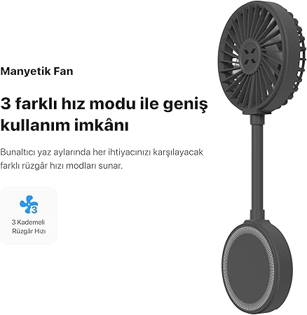 Smart Manyetik Fan Taşınabilir Vantilatör USB Type-C Şarj Edilebilir Ultra Sessiz 3 Hız Kademeli Soğutucu MagSafe Uyumlu Telefon Fanı (Gri) X6104