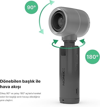 Smart Taşınabilir Mini Turbo El Vantilatörü Seyahat için USB Type-C Şarj Edilebilir Ultra Sessiz 5 Hız Kademeli 14000 rpm Ayarlanabilir Başlıklı Soğutucu Fan (Gri) X6101