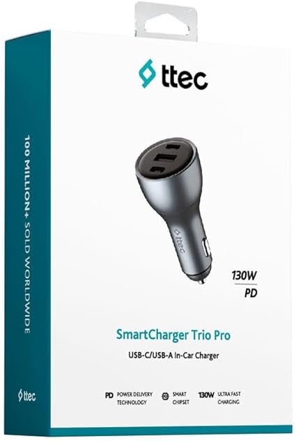 SmartCharger Trio PD 130W Araç Hızlı Şarj Aleti 2 USB-C+USB-A
