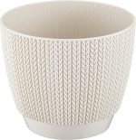 SML2 Sümela Saksı Tabaklı 14cm, 1,4 Litre Dekoratif Saksı Kirli Beyaz