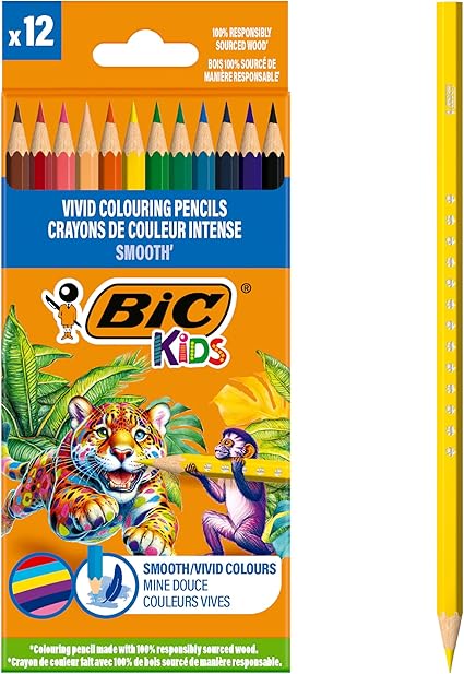 Bu kalemler %100 sorumlulukla tedarik edilmiş ahşaptan üretilmiştir ve kolay açılması sayesinde çocuklara uzun süreli boyama eğlencesi sunarlar.