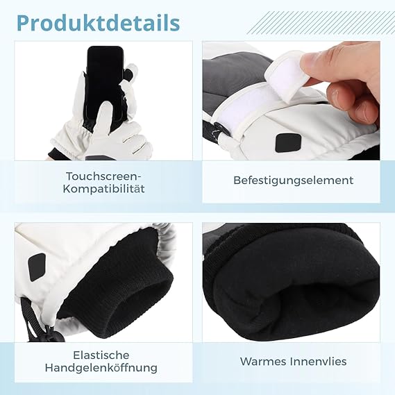 Snowboard eldiveni, erkek, dokunmatik ekran, sıcak kış eldiveni, kadın kayak eldiveni, bisiklet eldiveni, su geçirmez termal eldiven, bisiklet, kayak, yürüyüş için (saf beyaz)
