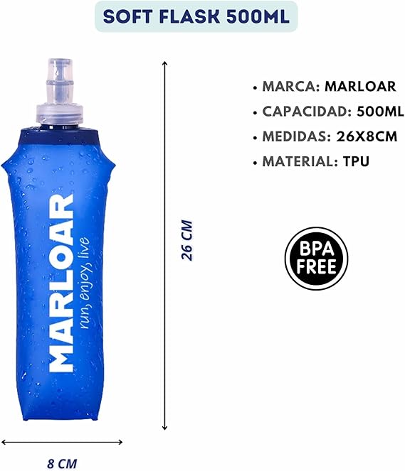 Soft Flask – Katlanabilir şişe – Katlanabilir şişe silikon – 2 adet yumuşak şişe 500 ml Koşu, Trail koşu ve yürüyüş için BPA içermez. (500 ml, Mavi)