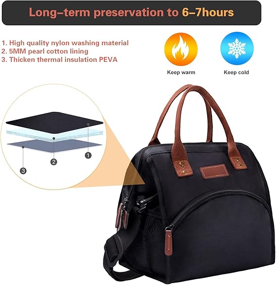 【Kolay temizlenir】Termal çanta makinede yıkanamaz, ancak malzemesi sayesinde sadece nemli bir bezle kolayca temizlenir. Kadınlar için soğutucu çantanın dış malzemesi su geçirmez, yani İçindeki yemekleri taze tutmak için yağmurlu veya bulutlu günlerde de kullanabilirsiniz.