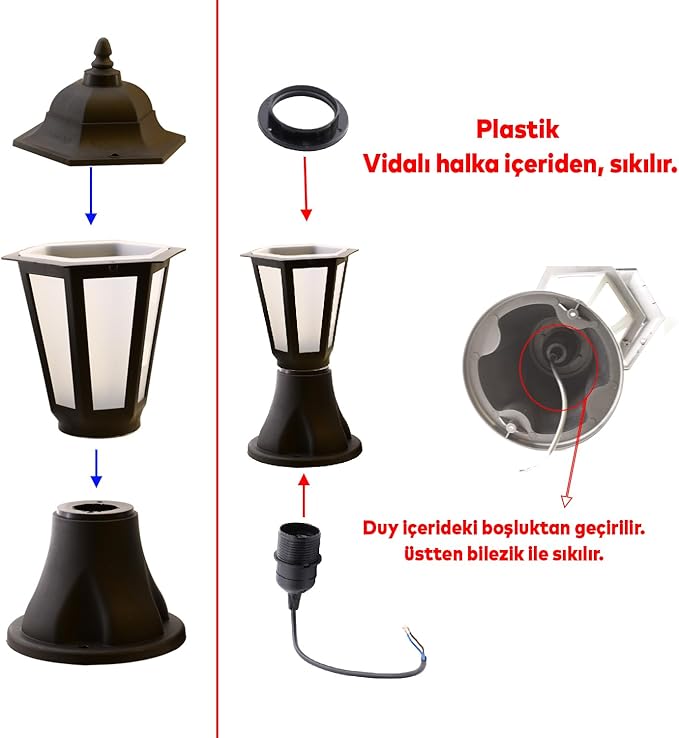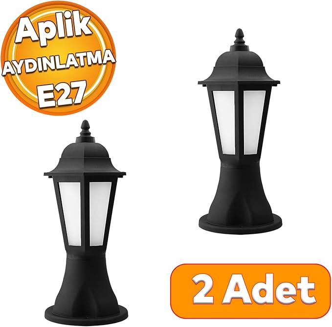 Sokak Bahçe Aplik Lamba Aydınlatma Lale Bahçe Duvar Üstü Armatürü E27 Duy Siyah Plastik