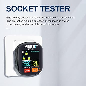 Soket Test Cihazı,30-250V Taşınabilir Dijital Soket Test Cihazı Dedektörü RCD Voltaj Test Cihazı Toprak Polaritesi Faz Kontrol Aracı Renkli Ekranlı