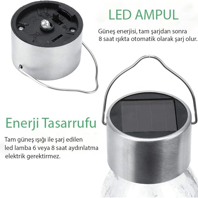 GÜNEŞ ENERJİLİ TASARIM: 200 mAh batarya kapasitesi, 6-8 saat şarj süresi ile 8-10 saat kesintisiz aydınlatma sağlar