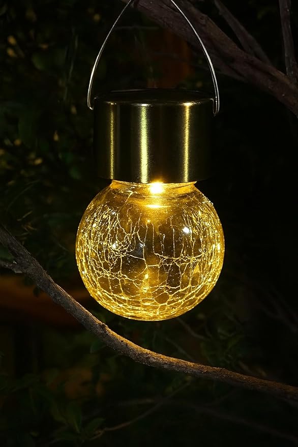 AYDINLATMA ÖZELLİKLERİ: Sarı ışık tonlarında, kırık cam desenli kristal top tasarımı, 6 cm çap ve 12 cm yüksekliğinde dekoratif bahçe aydınlatması