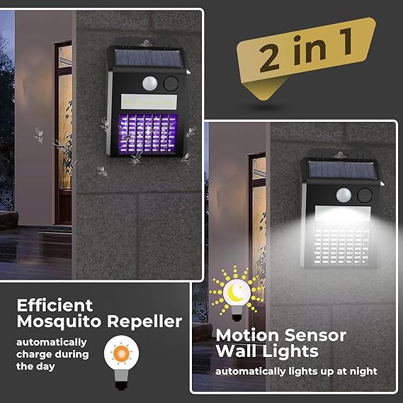 Solar Bug Zapper Dış Mekan, Sivrisinek Tuzağı ile Hareket Sensörlü Işık Sivrisinek/Sivrisinek/Güve/Meyve Sineklerini Öldürmek için Uçan Böcek Tuzağı Bug Catcher