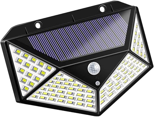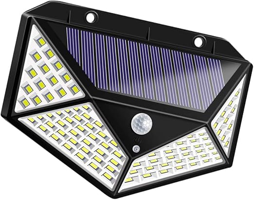Solar duvar lambası, su geçirmez, dış mekan, dört taraflı, 100 LED, hareket sensörü, garaj, avlu, ev kapısı, yol için gece lambası (siyah)
