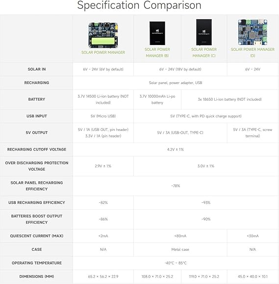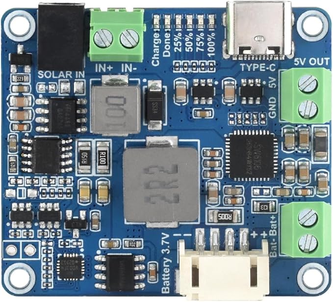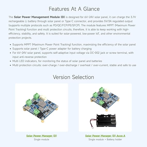 Solar Power Manager Module (D), Support 6V~24V Solar Panel & Type-C Power Adapter, 5V/3A Output, Solar Controller USB, MPPT Solar Charger, with Battery Holder (Batteries Are Not Included)