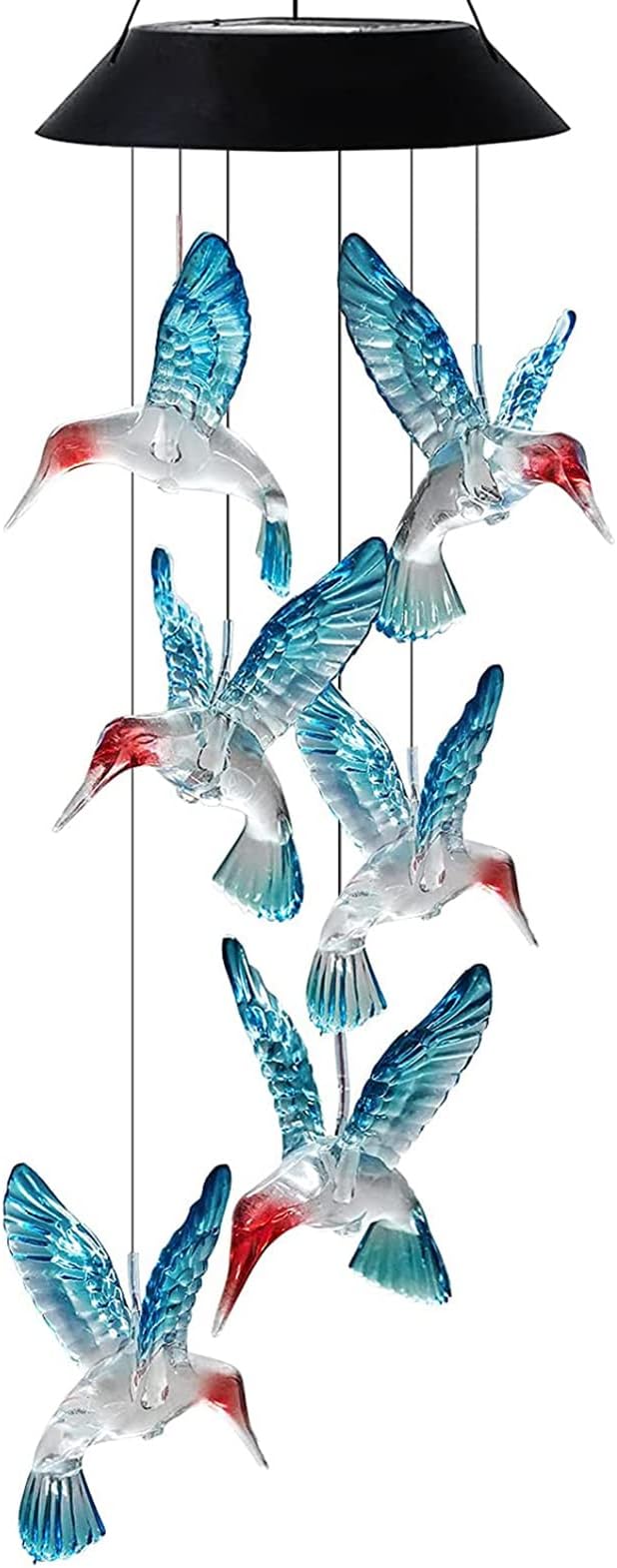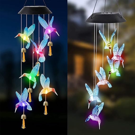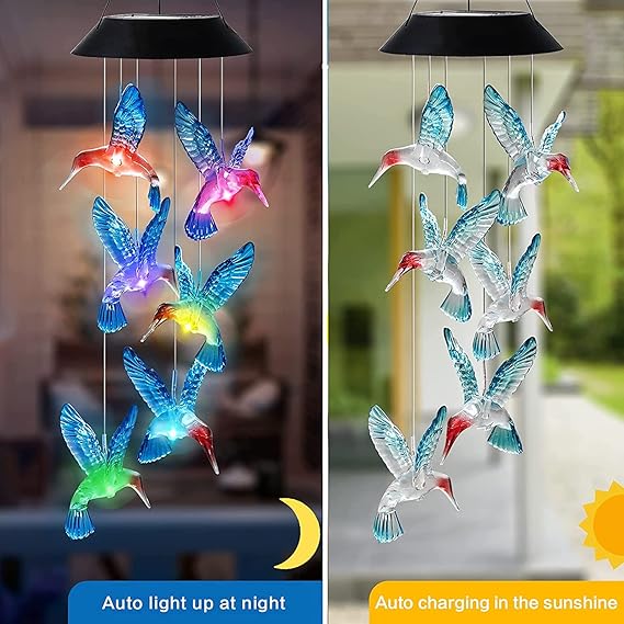 Uzun süre enerji tasarrufu sağlayan şarj edilebilir piller kullanan, tamamen yenilenmiş güneş panelleri güneş ışığını daha hızlı ve daha verimli bir şekilde elektriğe dönüştürür. Hummingbird rüzgar çanları geceleri 6-8 saat ışık sağlayabilir (tam şarj olduktan sonra).
