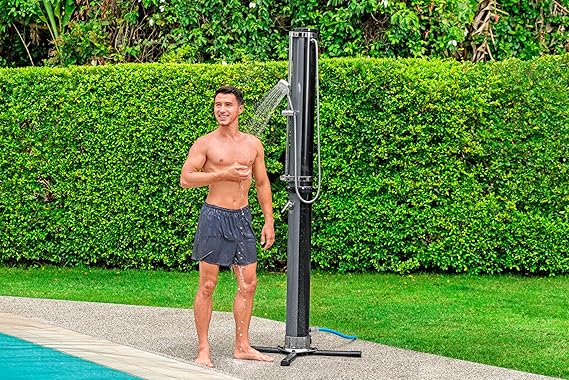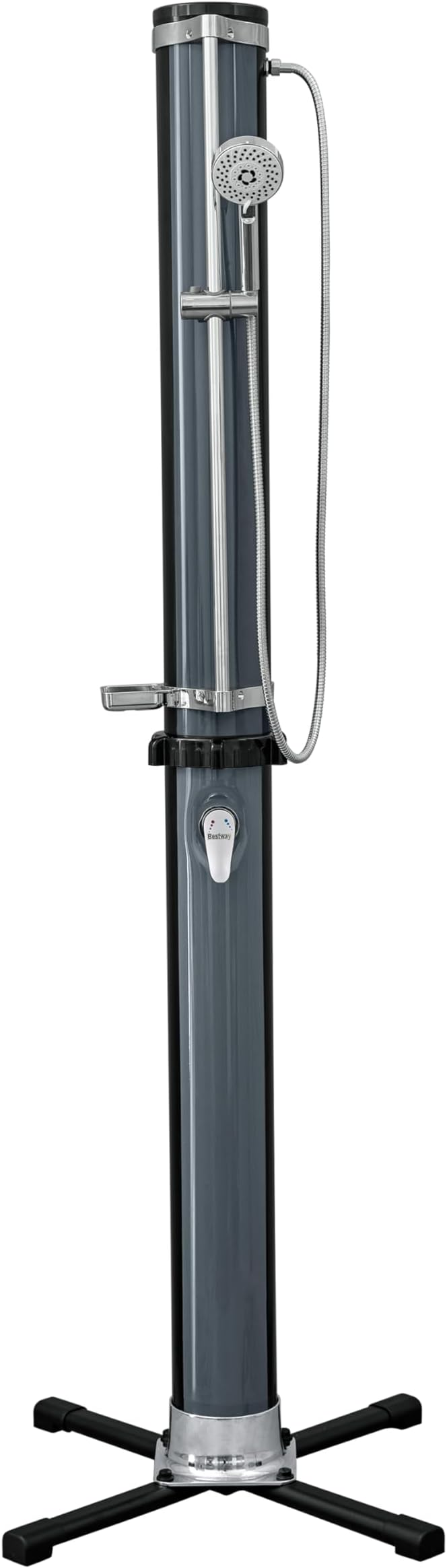 Sıcaklık regülatörü yardımıyla sıcaklık (ısıtıldıktan sonra) ve su akışının kolay ayarlanması pratik bahçe hortumu bağlantısı (hortum teslimat kapsamına dahil değildir), sabun için pratik raf