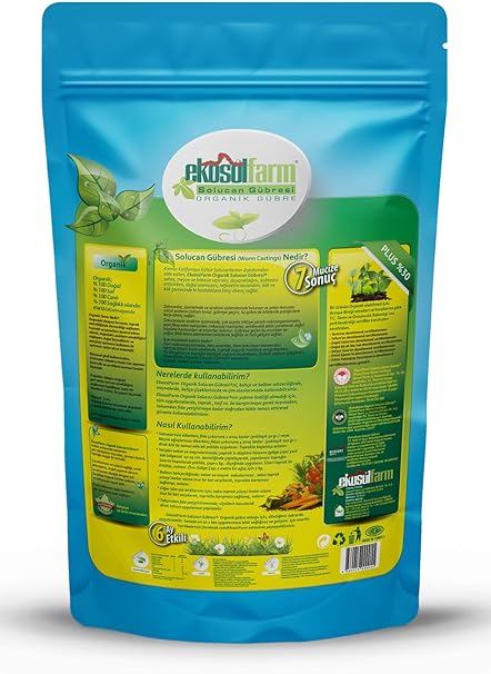 GÜÇLÜ BİTKİ BESLEYİCİ: EkosolFarm Solucan Gübresi içeriğinde bulunan güçlü besin elementleri yanında bitkiye faydalı mikroorganizmalar sayesinde bitkilerin beslenmesini sağlarken, kök hastalıklarına karşı ciddi direnç kazanmasını sağlar.