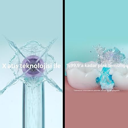 DERİN TEMİZLİK İÇİN QUAD STREAM TEKNOLOJİSİ: Özel X şekilli su akışı sayesinde daha geniş alanlara ulaşarak diş aralarını derinlemesine temizler.