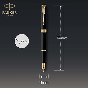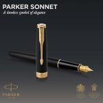 Sonnet Mat Siyah Altın Tasarımlı Dolma Kalem, Orta Kalınlıkta Uç, Mavi Mürekkep