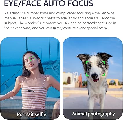 Göz/Yüz Otomatik Odaklama: Manuel objektiflerin karmaşık ve karmaşık odaklama deneyimi reddedilir, otomatik odaklama bu nesneyi verimli ve hassas bir şekilde kilitlemeye yardımcı olur. Gördüğünüz harika an, bir sonraki saniyede mükemmel bir şekilde kaydedilebilir ve her özel sahneyi sıkıca yakalayabilirsiniz.