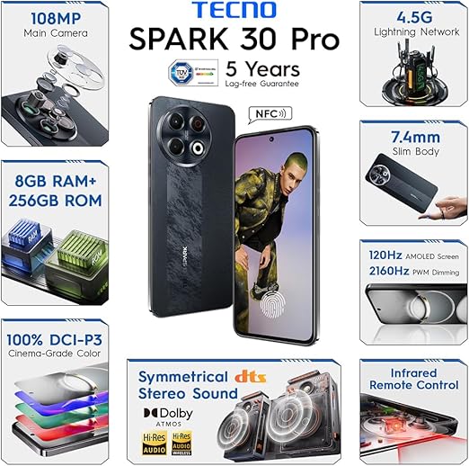 Spark 30 Pro 256 GB 16 GB (8+8) Ram (Tecno Türkiye Garantili) (Siyah)