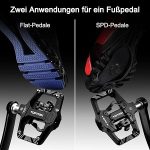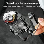 【Ayarlanabilir gerilim ve kayma direnci】Klik pedalları ayarlanabilir takma ve sökme ayarlarına sahiptir, ihtiyaçlarınıza göre serbestçe ayarlanabilir. Çözmek için sola döndürün, sıkmak için sağa döndürün. Diğer taraftaki düz pedal, tutuşu artırmak ve kaymayı önlemek için 4 paslanmaz çelik çivi ile donatılmıştır, böylece sürüşünüz daha güvenli olur