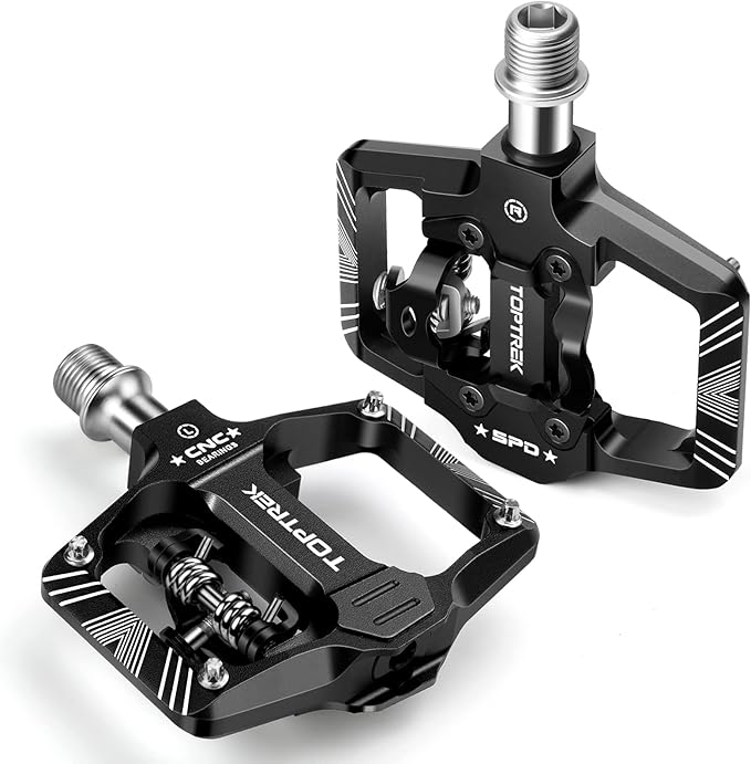 【Çift fonksiyonlu pedallar】Toptrek-SPD pedalların iki tarafı vardır, bir tarafı SPD pedal olarak kullanılır, güç tasarrufu sağlamak ve pedal verimliliğini artırmak için tüm SPD-MTB pedal sistemleriyle uyumludur. Diğer tarafı tüm günlük ayakkabılarla uyumlu geleneksel düz pedallardır. SPD pedallar veya geleneksel düz pedallar ihtiyaca göre isteğe göre değiştirilebilir