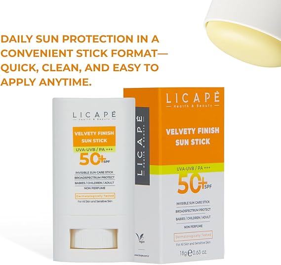 Hafif & Yapışkanlık Bırakmayan Doku: Licape güneş kremi stick, ciltte beyaz kalıntı bırakmadan hızla emilir. Hafif dokusu sayesinde gözenekleri tıkamaz, yapışkan his oluşturmaz ve cilde doğal bir parlaklık kazandırır. Cildi nemlendirirken aynı zamanda konforlu bir kullanım sunar.