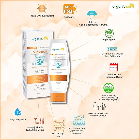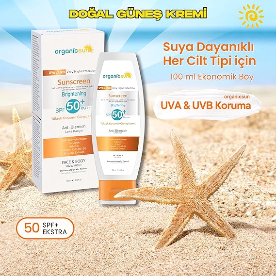 Spf 50+ Yüz ve Vücut Güneş Kremi 100ML – Leke Karşıtı, Yüksek Korumalı, Suya Dayanıklı, Her Cilt tipine uygun, Vegan