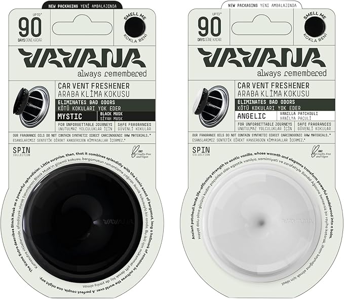 Spin Araba Klima Kokusu - Profesyonel Otomobil Kokusu | BPA & Sıvı İçermez | 90 Gün Etkili | 2'li Set (MYSTIC & ANGELIC)Spin Araba Klima Kokusu – Profesyonel Otomobil Kokusu | BPA & Sıvı İçermez | 90 Gün Etkili | 2’li Set (MYSTIC & ANGELIC)