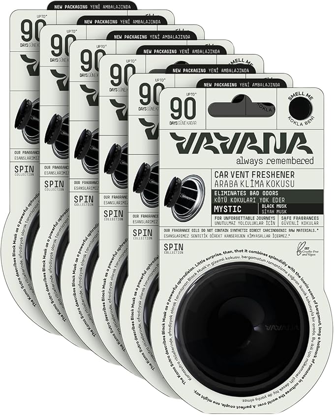 Spin Araba Klima Kokusu – Profesyonel Otomobil Kokusu | BPA & Sıvı İçermez | 90 Gün Etkili – 6’lı Set (MYSTIC)