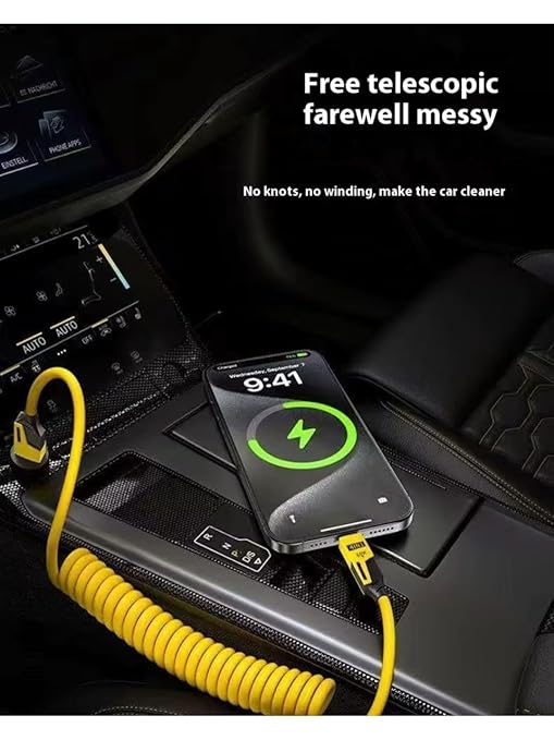 Spiral Şarj Kablosu 65W Hızlı Şarj – USB-A Type-C Lightning Çoklu Kablo – Esnek Yay Tasarım – Premium Kalite Çok Fonksiyonlu Data Kablosu (Sarı)
