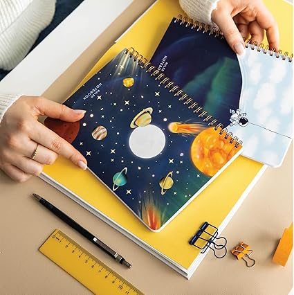 Spiralli Karton Kapak 2’li Set Çizgili Okul Defteri 80 yaprak, Ders Programlı Galaksi
