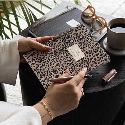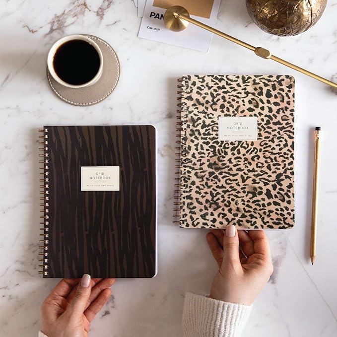 Spiralli Karton Kapak 2’li Set Kareli Okul Defteri 80 yaprak, Ders Programlı Leopar