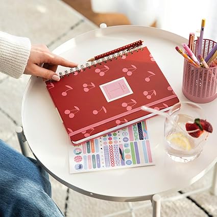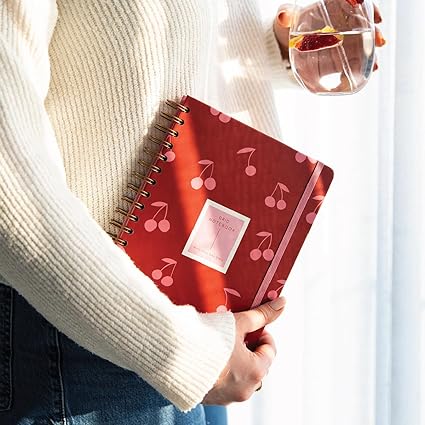 Spiralli Lastikli Sert Kapak Kareli Not Defteri Kiraz