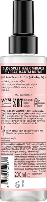 Ana Sayfa Kişisel Bakım ve Kozmetik Saç Bakımı Şampuan ve Saç Kremi Kremler Split Hair Miracle Kırık Uçları Mühürleyen Sıvı Saç Bakım Kremi – İyonik Kompleks ve Üzüm Çekirdeği Yağı ile 200 ml