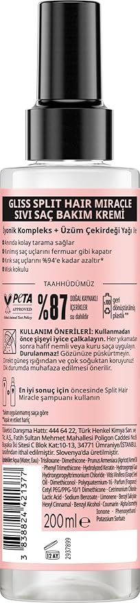 Split Hair Miracle Kırık Uçları Mühürleyen Sıvı Saç Bakım Kremi – İyonik Kompleks ve Üzüm Çekirdeği Yağı ile 200 ml