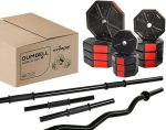 Spor 30 Kg (150 cm) DÜZ BAR + Z BAR Dambıl Dumbell Ağırlık Halter FULL SET Kırmızı Kapaklı