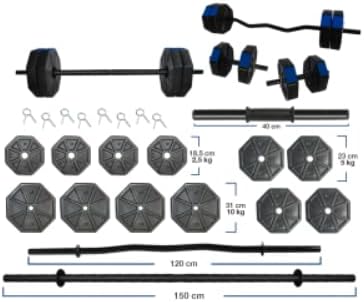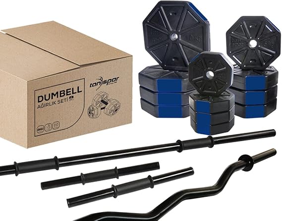 Spor 70 Kg DÜZ BAR (150 cm + Z BAR ( 120 cm ) Dambıl Ağırlık Halter FULL SET Mavi Kapaklı