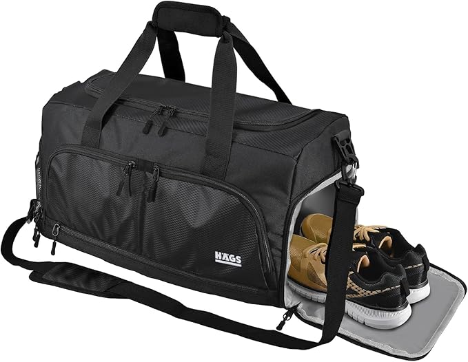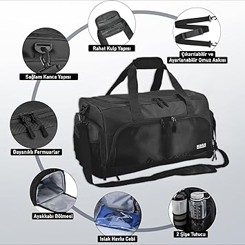 Spor Çantası, 10 Cepli, Ayakkabı bölmeli, Su Geçirmez Islak Eşya Keseli, Organizer Tasarımlı Dayanıklı Bay Bayan Seyahat Çantası, Gym, Fitness Çantası – Siyah