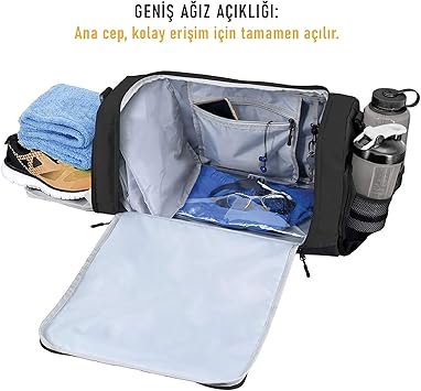 ✅ MULTI CEPLİ: Organize etmek için toplam 10 bölme. Büyük dahili telefon cebi ve anahtarlık halkası, ayrıca diğer küçük eşyalar için 2 harici fermuarlı cep içerir. Kolay erişim için cırt cırtlı arka cep. Tam Boy Ayakkabı Cebi: Kirli ayakkabılarınızı diğer ekipmanlarınızdan ayırmak için özel bölme. Islak Cep: Islak giysileri ve mayoları saklamak için gizli suya dayanıklı cep, yüzme antrenmanı veya terli spor kıyafetleri için mükemmeldir. 2 Şişe Tutucu: 32 oz su şişesi ve standart boyutta protein shaker’a uyacak şekilde tasarlanmış iki harici file kese içerir.