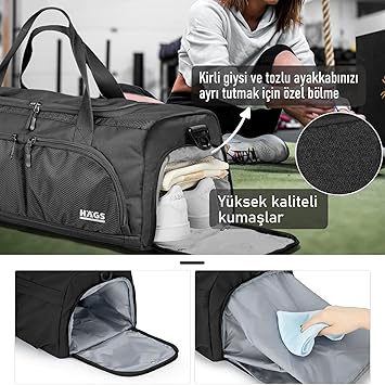 ✅ YÜKSEK KALİTE MATERİAL: Sert, suya dayanıklı alt panel, seyahat çantası, spor çantasının yapısını korumasına ve kuru kalmasına yardımcı olurken, önemli stres noktalarındaki güçlendirilmiş dikişler, bu çantanın ömür boyu dayanacak şekilde kalmasını sağlar.