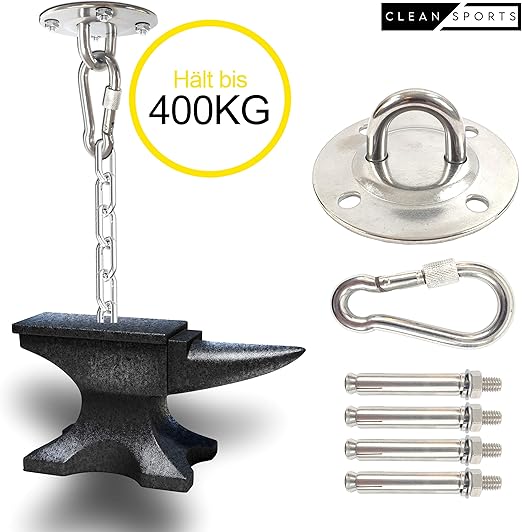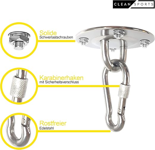 SPORTS® Boks torbaları için tavan askısı, boks torbası tutucu, askı antrenmanı, salıncaklar, hamaklar, paslanmaz çelik tavan kancaları için 400 kg taşıma kapasitesi, karabina kancalı