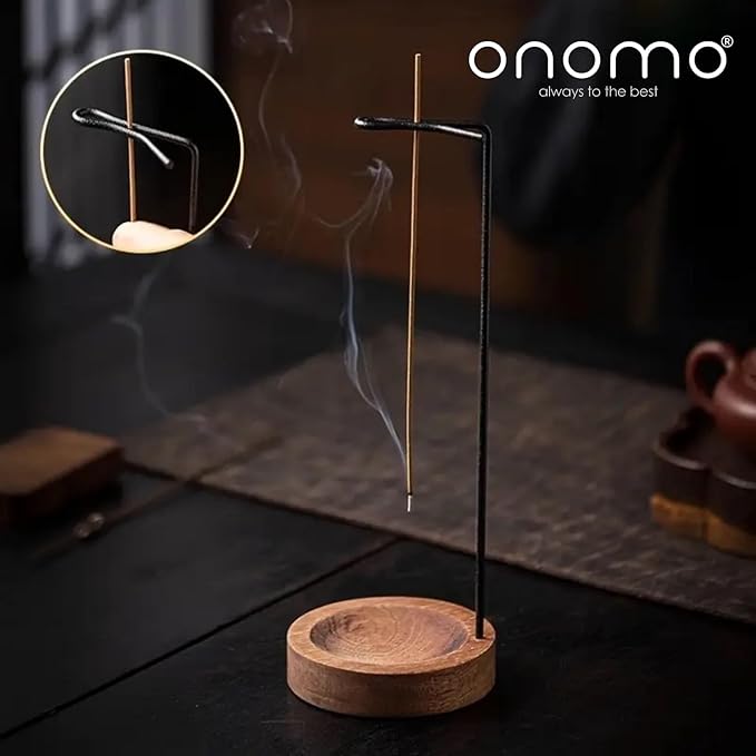 ZARIF TASARIM: Modern ahşap taban ve siyah metal gövdeli tütsü standı, her dekorasyon tarzına uyum sağlar ve meditasyon deneyiminizi zenginleştirir