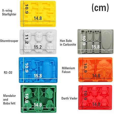 Dondurmaz ve fırında kullanılabilir – Bu çok yönlü kalıplar sadece buz üretimi için kullanılmaz. 230 °C’ye kadar güvenlidir, Star Wars karakter şekerleri, jöleler, çikolatalar, çocuk tebeşirleri ve sabunların tümü Star Wars çikolata kalıpları ile silikondan üretilmiştir. Star Wars sabun kalıpları, Star Wars Jell-O kalıpları ve Star Wars pişirme kalıplarıdır
