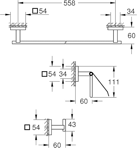 Vidalamak (vidalar ve dübeller dahil) veya yapıştırmak için uygundur (GROHE QuickGlue A1 yapıştırıcı 41127000 ayrı satılır)