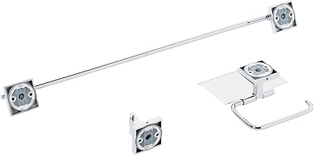 Start Cube QuickFix Üçlü Banyo Aksesuar Seti | Uzun Havluluk (558mm), Tuvalet Kağıtlığı(Kapaklı), Bornoz Askısı | Duş/Banyo Aksesuarları | Krom | 41124000
