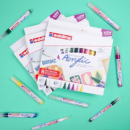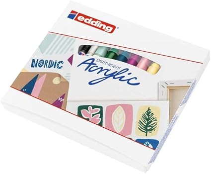 2 x edding 5300 akrilik işaretleyici anahatlar ve özel dokunuşlar için ince; 6 x edding 5100 akrilik markör ortamı çeşitli motifler oluşturmak için