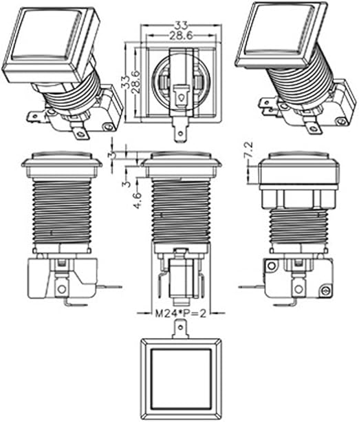 STARTS BAŞLAR 10 x Arcade Kare LED Işıklı Push Button Mikro Anahtarı ile Arcade Makinesi Oyun Oyun Konsolları Jamma Kiti Parçaları 12 V Lamba 33 mm Düğmeler (her renkten 2 parça)