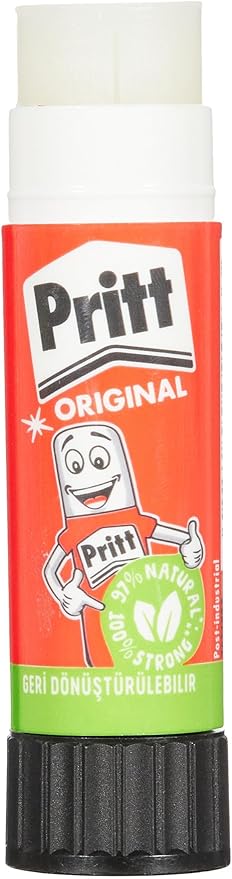 Ambalaj içeriği – Pritt Stick Yapıştırıcı, kağıt, karton, kumaş, keçe ve fotoğraflar için solvent içermeyen ofis ve okul yapıştırıcısı, su dahil %97 doğal içerik, şeffaf, 1x22g