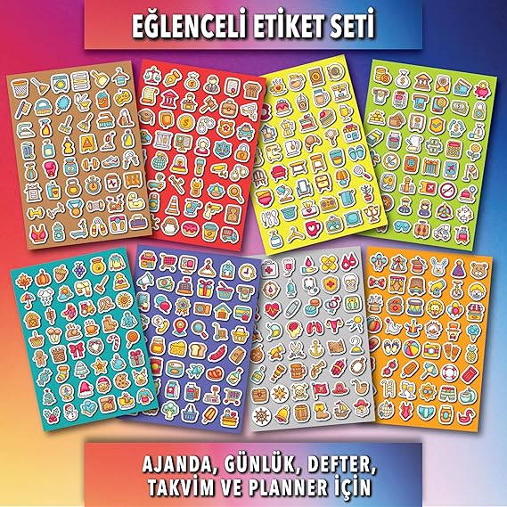 ⭐ Konsept Tasarım Ürün karikatürize edilmiş grafik görsellerden oluşmaktadır. Defter, planner, günlük, ajanda ve takvimlerinizi sizler için eğlenceli bir aktiviteye dönüşecektir